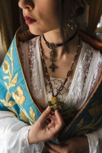 Il percorso parte dal centro storico di Piana degli Albanesi: prima tappa al MUSARB – Museo della Cultura Arbëreshe, che custodisce i sontuosi costumi tradizionali femminili ricamati in oro; si prosegue con il Santuario di Maria SS. Odigitria e con il Museo del Collegio di Maria, che ospita la più ampia collezione di paramenti sacri di rito bizantino. La visita si conclude nel quartiere Sheshi, dove murales contemporanei reinterpretano simboli e colori della tradizione arbëreshe.