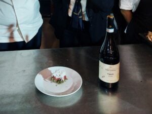 A chiudere, la proposta dello chef Alessandro Ingiulla, stella Michelin del Sapio Restaurant di Catania. Formatosi tra Austria e Francia, nel 2016 è tornato in Sicilia aprendo il suo ristorante insieme alla compagna Roberta Cozzetto. Il piatto presentato ruota intorno ai licheni dell’Etna, raccolti e selezionati con l’agronomo Ennio D’Emanuele e lavorati per due giorni: bolliti, asciugati, essiccati per sette ore, poi reidratati e fritti in farina. Li accompagnano manzo crudo condito con aceto, origano e olio, rafano, nocciola e midollo di vitello affumicato. In degustazione, Etna Rosso Contrada Monte San Nicolò 2021 (Nerello Mascalese 100%) e Sicilia Frappato Fondo Filara 2024 (Frappato 100%) di Tenute Nicosia.