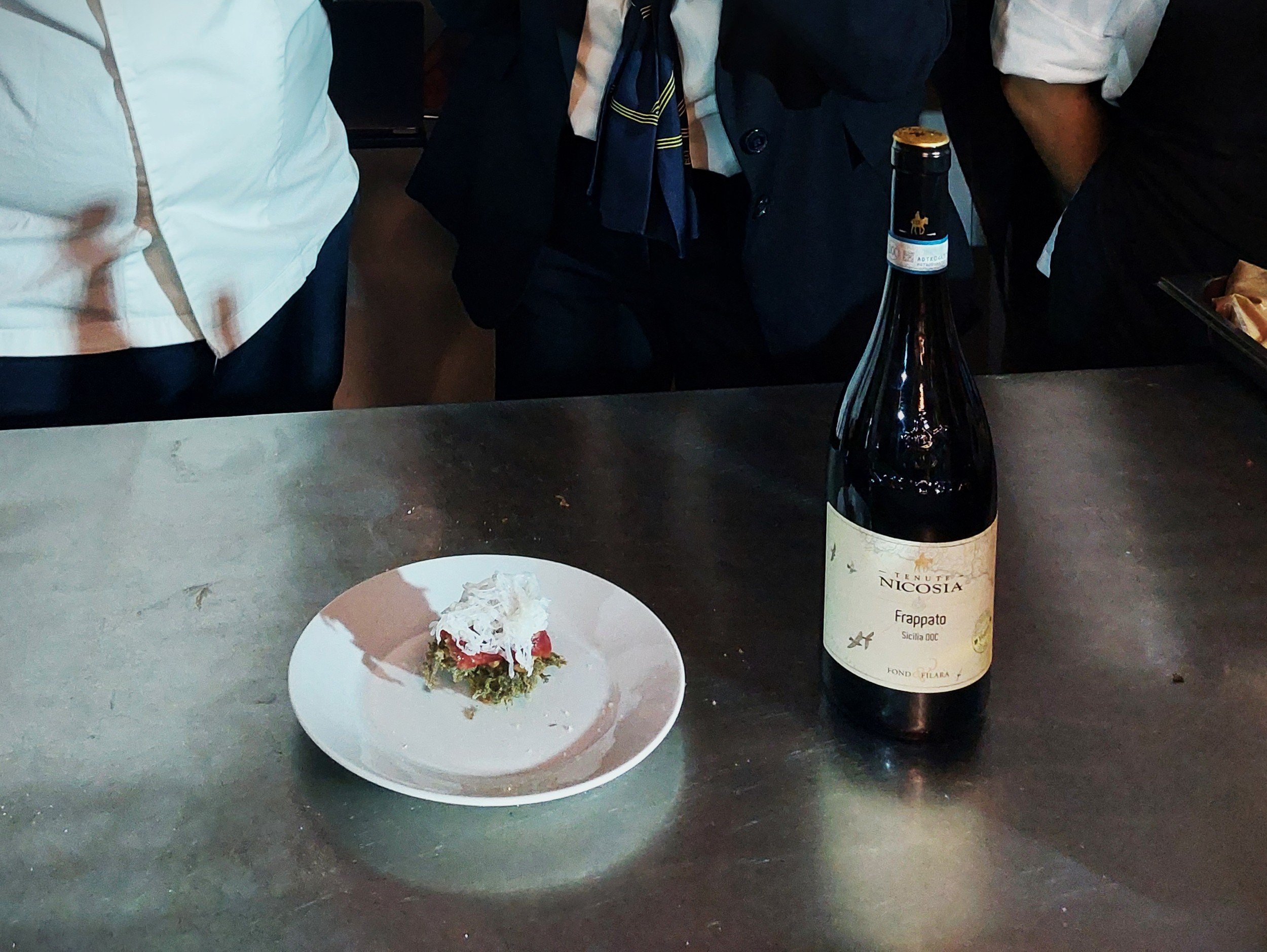 La chef Francesca Leonardi, docente dello stesso istituto e titolare del Ristorante Royal di Randazzo, ha presentato Delizie dell’Etna: una focaccia di farina di Russello, con ricotta di pecora e marmellata di clementine, completata da una foglia di menta.
