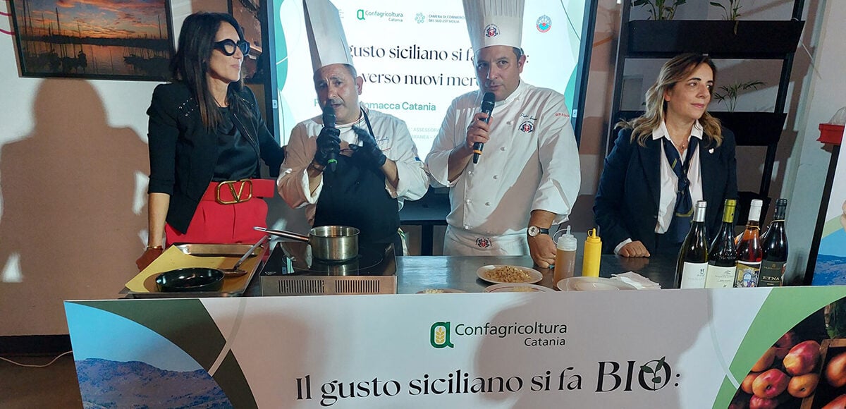 “Il gusto siciliano si fa bio: verso nuovi mercati”. Con questa frase, Confagricoltura Catania, guidata dal presidente Giosuè Arcoria, ha sintetizzato il senso di una giornata interamente dedicata al biologico, tema oggi centrale per l’agricoltura e la ristorazione di qualità. Il 16 ottobre, Piazza Scammacca, spazio enogastronomico e culturale di Catania, ha ospitato un evento che, tra tavole rotonde, cooking show, biotalking e incontri B2B con operatori del canale Ho.Re.Ca., ha esplorato il tema da prospettive diverse, offrendo voce ai protagonisti della filiera produttiva.
