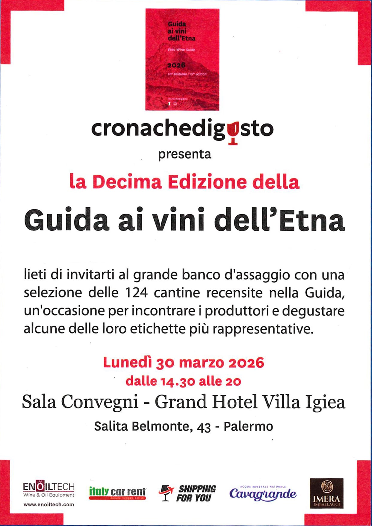 Sarà presentata lunedì 30 marzo a Palermo, negli spazi del Grand Hotel Villa Igiea, la decima edizione della Guida ai Vini dell’Etna, edita da Cronache di Gusto. Un appuntamento che negli anni si è consolidato come momento di confronto e aggiornamento su uno dei territori più dinamici del vino italiano.