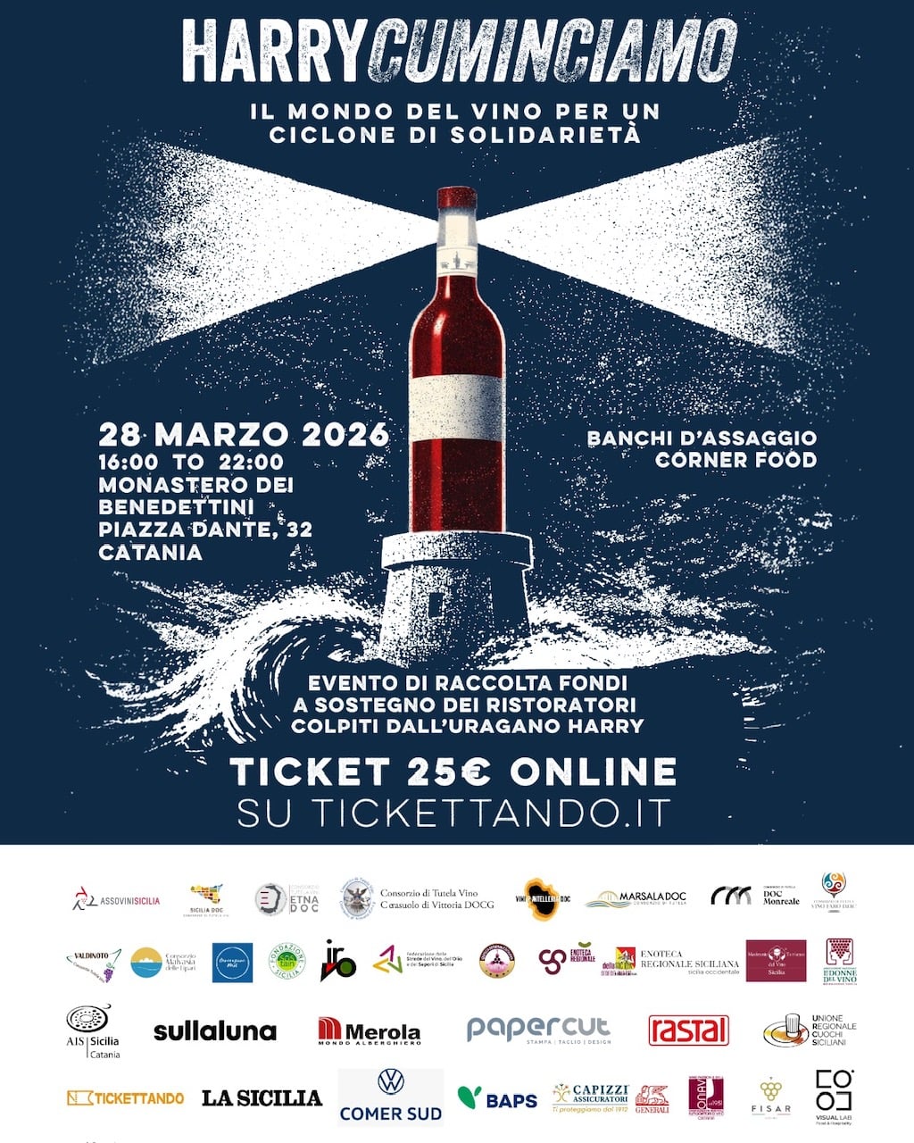 Da questa consapevolezza nasce Harrykuminciamu, simbolo di ripartenza e di comunità. Su iniziativa di Assovini Sicilia prende vita una grande degustazione solidale aperta al pubblico, in programma sabato 28 marzo nella prestigiosa cornice del Monastero dei Benedettini di San Nicolò l’Arena, a Catania, dalle ore 16:00 fino alle 22.00.