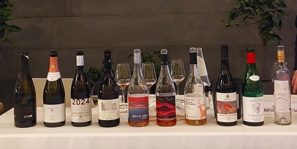 Sono intervenuti tra gli altri: Roberta Termini, per Terrazze dell’Etna; Maria Cannavò, per Vini Cannavò; Santi Natola, per tenute Nicosia; Giovanni Gurrieri, per Cantina Gurrieri; Francesco Loi, per Cantine di Nessuno; Antonio La Fata, per Graci; Andrea Marletta, agronomo ed enologo di varie cantine; Rosa Ciancitto, per Cantoneri; Fabio Marco Maria Marcialis, brand ambassador di Horus.