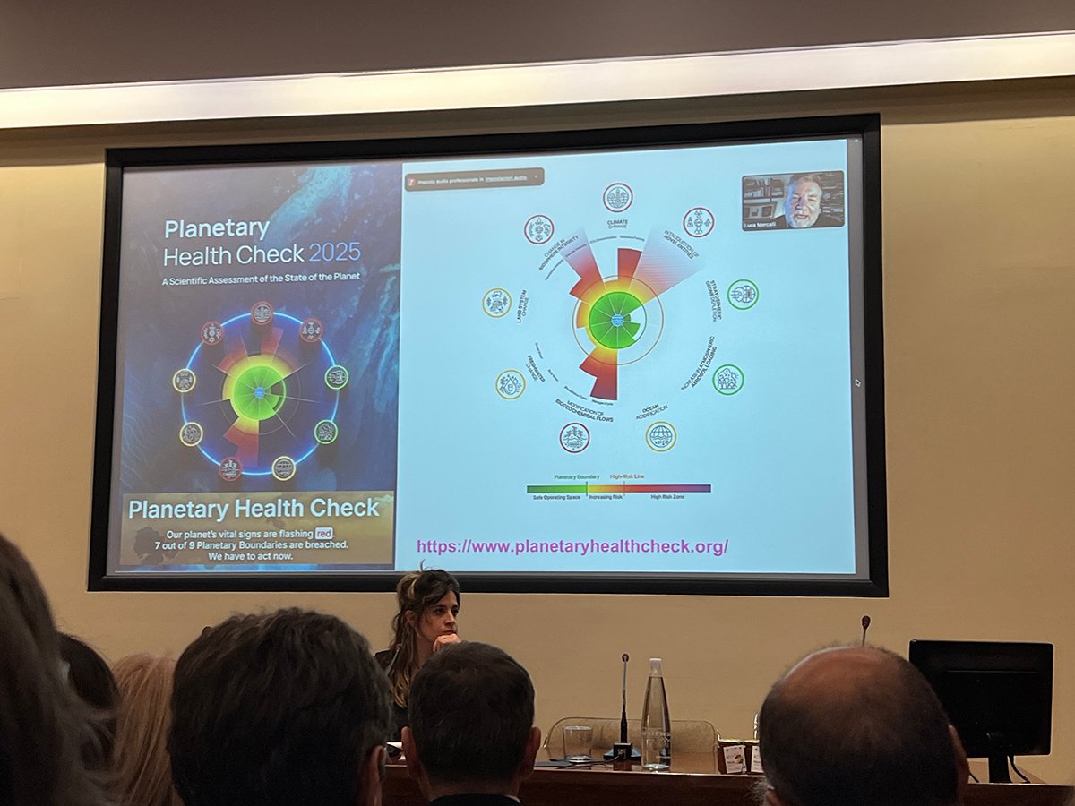 Tra gli interventi più coinvolgenti c’è stato quello di Luca Mercalli, climatologo, divulgatore scientifico e presidente della Società Meteorologica Italiana, collegato da Torino. Ha scelto di non prendere l’aereo per coerenza con le proprie convinzioni e il proprio stile di vita, e questa scelta, più delle parole, ha dato misura del suo messaggio. Mercalli ha spiegato cosa significhi un aumento potenziale della temperatura fino a +5°C entro la fine del secolo: estati più dure, incendi, desertificazione, difficoltà di approvvigionamento idrico, trasformazioni profonde degli ecosistemi. Una prospettiva che appare lontana solo a chi non guarda la cronaca degli ultimi anni. Eppure, ha ricordato, restano margini per contenere i danni se si adotta rapidamente un modello energetico basato sulle rinnovabili e su un uso più responsabile delle risorse.