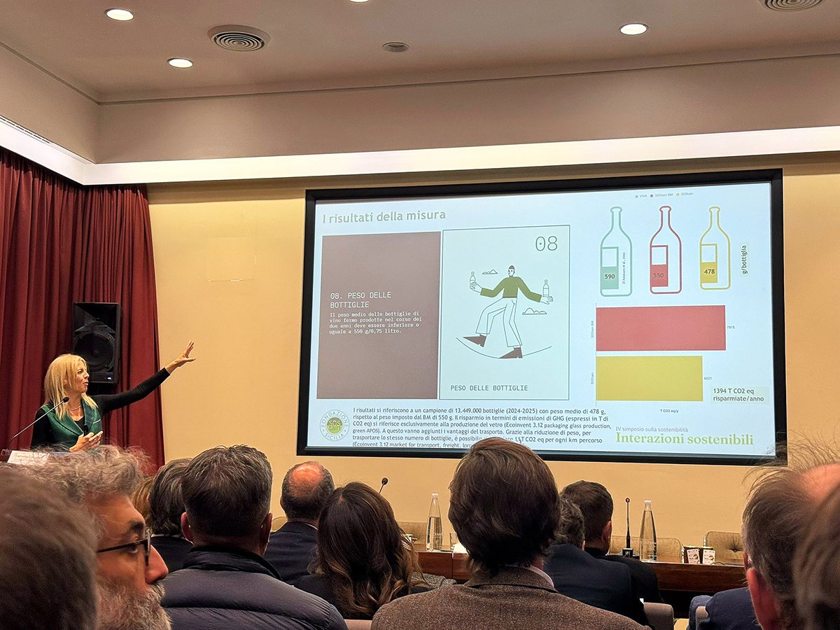 La forza del Simposio è stata la capacità di coniugare analisi scientifiche e casi reali. Un esempio arriva dalla ricerca sul peso delle bottiglie, un tema che riguarda un pezzo importante dell’impronta ambientale del vino. Qui è entrata in gioco O-I, uno dei maggiori produttori mondiali di contenitori in vetro e partner tecnico della Fondazione. Insieme alle aziende SOStain, O-I ha analizzato oltre dieci milioni di bottiglie prodotte da otto cantine certificate. Il risultato racconta molto più di una semplice scelta estetica.