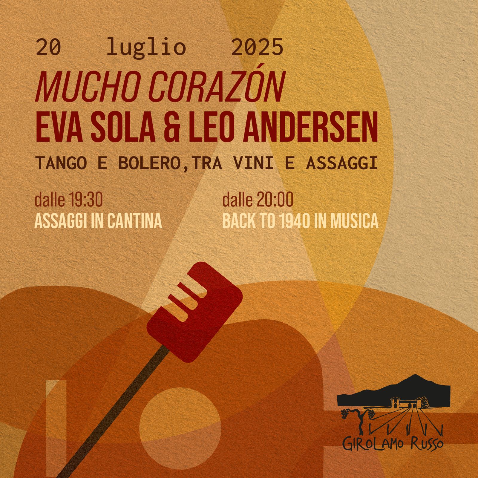 HomeAppuntamentiMucho Corazon. Tango e Bolero degli anni '40 tra vini e assaggi. Con Eva Sola e Leo Andersen. Etna, 20 luglio, Girolamo Russogirolamo russo